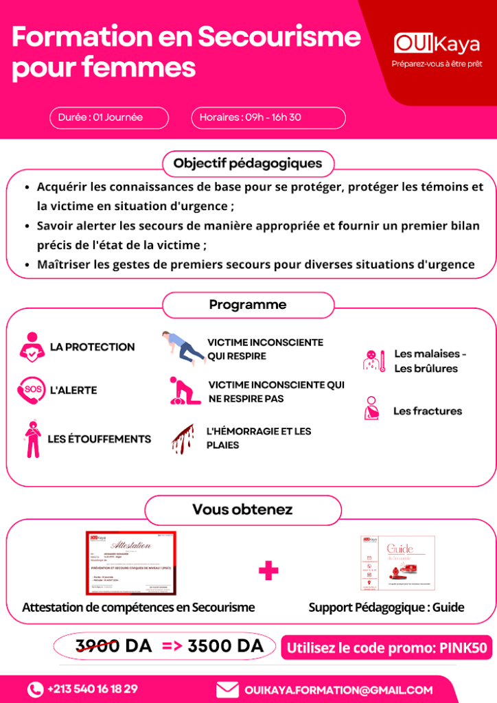 Cette formation est spécialement conçue pour les femmes souhaitant acquérir des compétences en premiers secours, que ce soit à la maison, au travail, ou dans leur communauté.